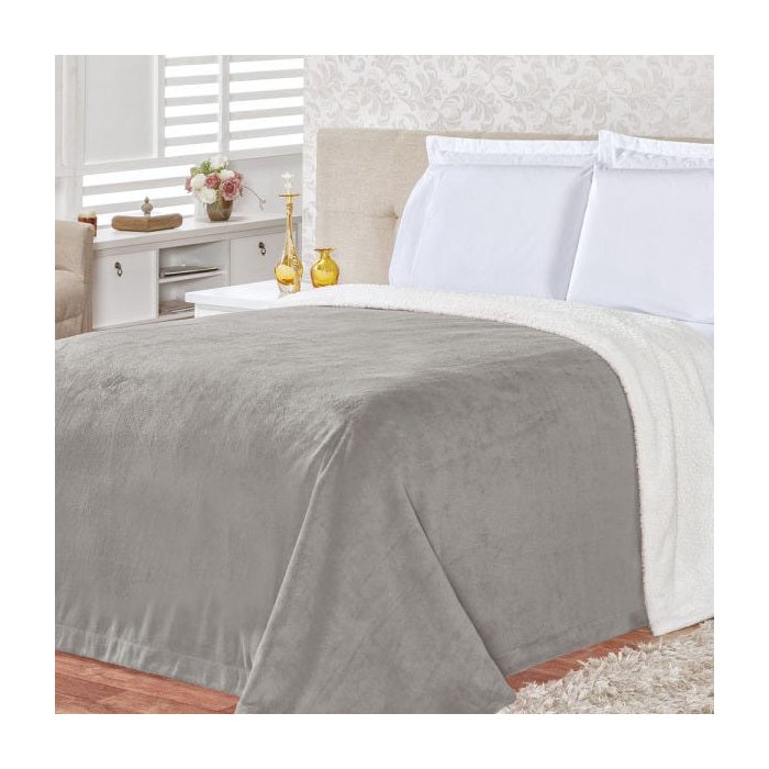 Cobertor Alaska King 1 Peça Microfibra Lã de Carneiro:cinza