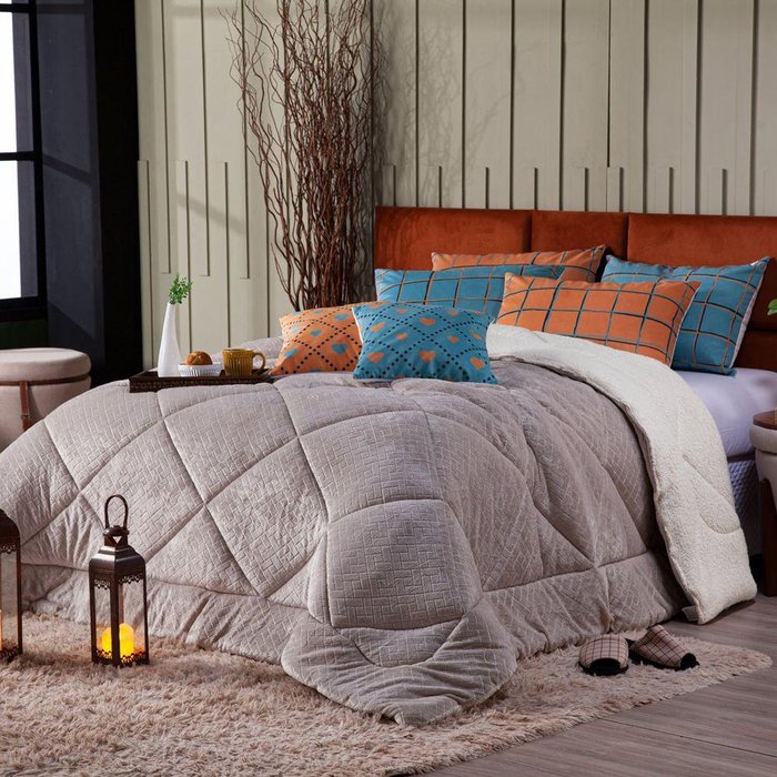 A nova coleção de coberdrons Plaza traz toda a sofisticação e aconchego. Por possuírem dupla face, apresentam superfície que valoriza ainda mais as cores, confeccionado em pantográfica computadorizada com lindos desenhos geométricos! Composto de Manta Microfibra em poliéster com 150gr de enchimento e em Sherpa simulando lã de carneiro, extremamente macio e perfeito para aquecer. Acompanhando também porta-travesseiros e capas de almofadas estampados temáticos, todos confeccionados em tecido microfibra de altíssima qualidade! Ideal para decorar, trazer conforto e tornar o quarto ainda mais convidativo e elegante! Confira!Contém: