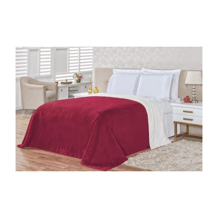 Cobertor Casal Dupla Face Pele De Carneiro - VERMELHO
