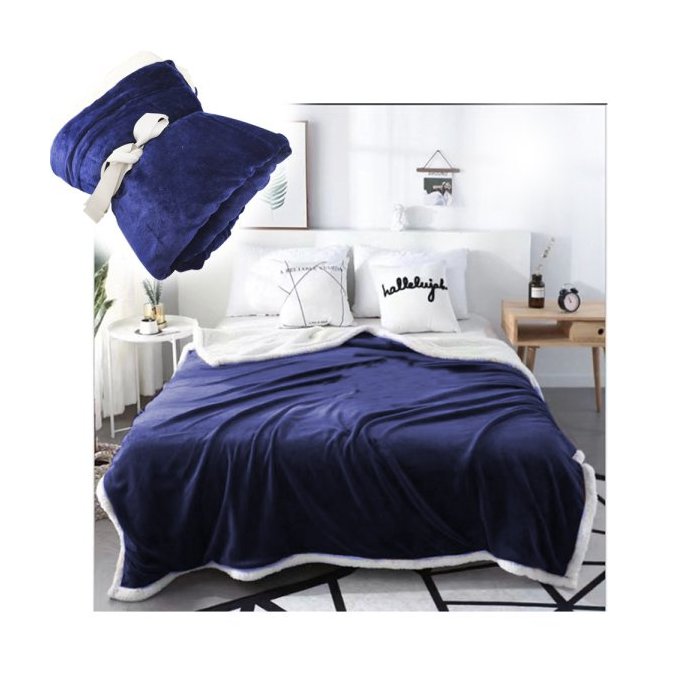 Cobertor Edredom Manta Casal Microfibra Dupla face Extra Macia Carneiro Reversa Azul / Branco