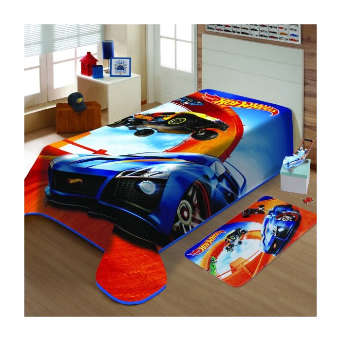 Cobertor Infantil Mattel Hot Wheels Pista Poliéster Microfibra Jolitex 1,50mx2,00m