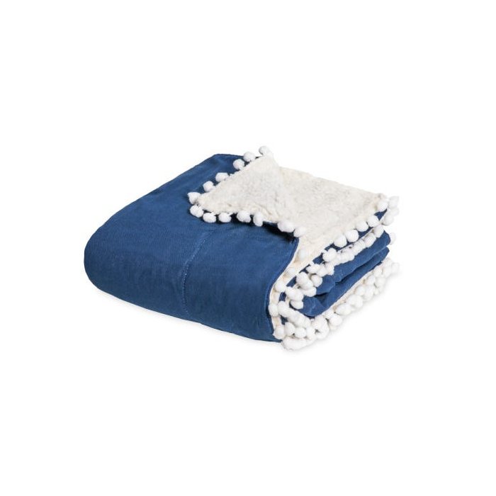 Cobertor Manta Bebê Hipoalergênico Dupla Face Sherpa com Pompom - Azul Marinho