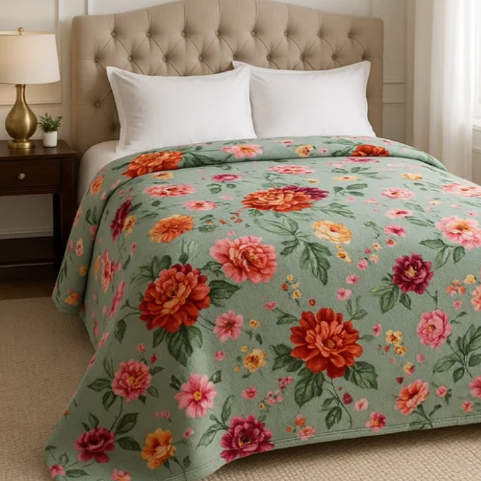 Cobertor Soft Microfibra Solteiro Estampa Floral Verde Claro – Conforto e Charme