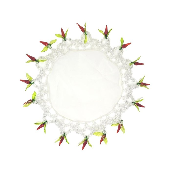 Cobre jarra em tecido organza, com fino acabamento bordados com pedrarias incolor, pimentas vermelhas e folhas verdes. Normalmente as jarras não tem tampa, os líquidos ficam expostos, por isso um cobre jarra é eficiente como proteção. A delicadeza das pedrarias com a proteção da organza torna a peça sofisticada, conferindo beleza a sua mesa!