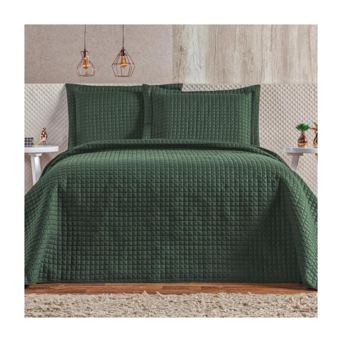 Cobre Leito 3 Peças Queen Percal 180 Fios Plata Verde Militar