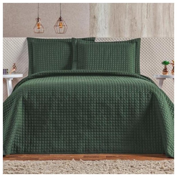 Cobre Leito 3 Peças Queen Percal 180 Fios Plata Verde Militar