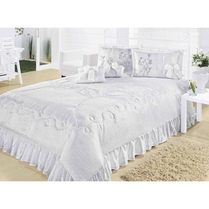 Cobre Leito Amore Seda Amassada Queen 07 Peças - Branco/Azul