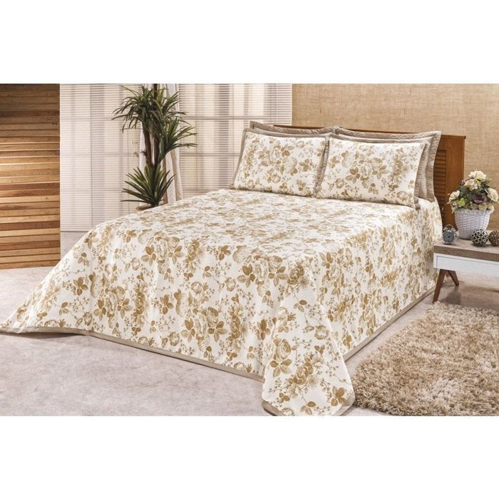 Cobre Leito Arezzo Casal 03 Peças - Cáqui