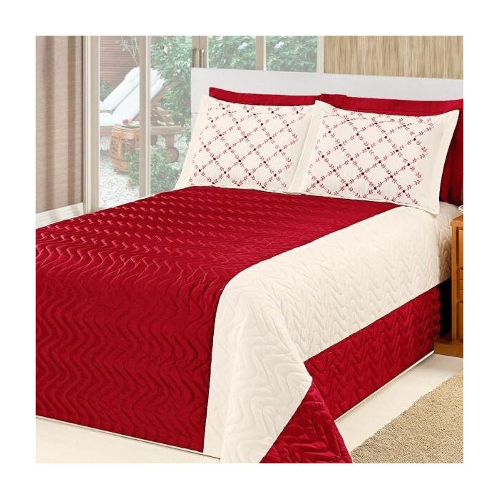 Cobre Leito Baviera Casa Dona King 5 peças Vermelho Branco