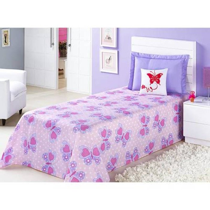 Cobre Leito Borboleta Solteiro Lilás e Rosa com 3 peças Algodão e Poliester