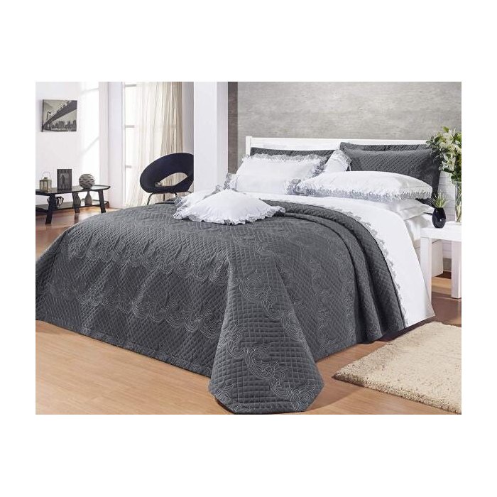 Cobre Leito Bordado Casal Super King Coleção Milano Percal 200 Fios Liso com 3 peças