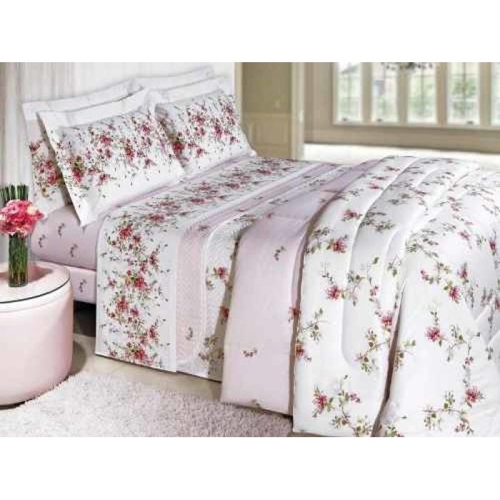 Cobre-leito Casal 3pc 100% Algodão Percal 200 Fios Livia