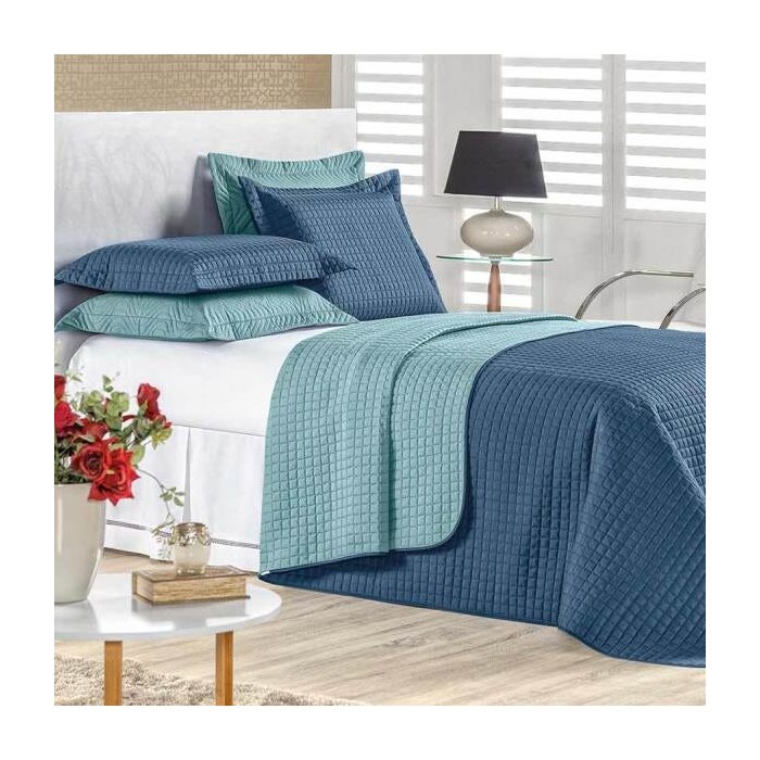 Cobre Leito Casal Antuérpia 03 Peças Dupla Face - Marinho/Ocean