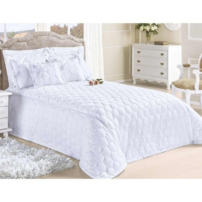 Cobre Leito Casal Classic 05 Peças em Tecido Lese - Branco