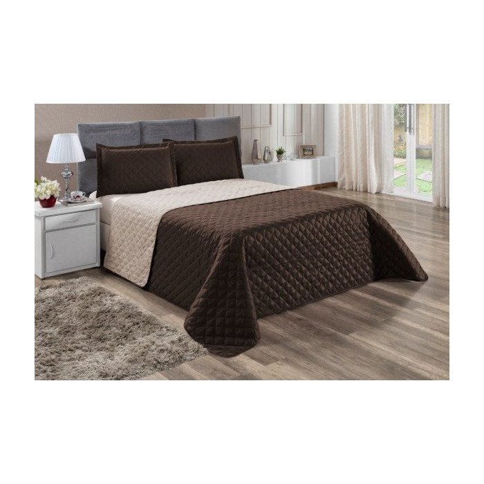 Cobre Leito Casal King 3 Pçs Microfibra - Colcha Dupla Face Marrom