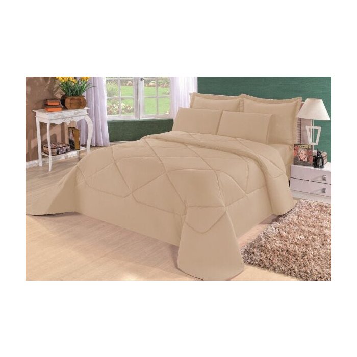 Cobre Leito Casal King Kit Conforto Liso Marrom + 1 Lençol de Elástico 6 PÇS - Bege