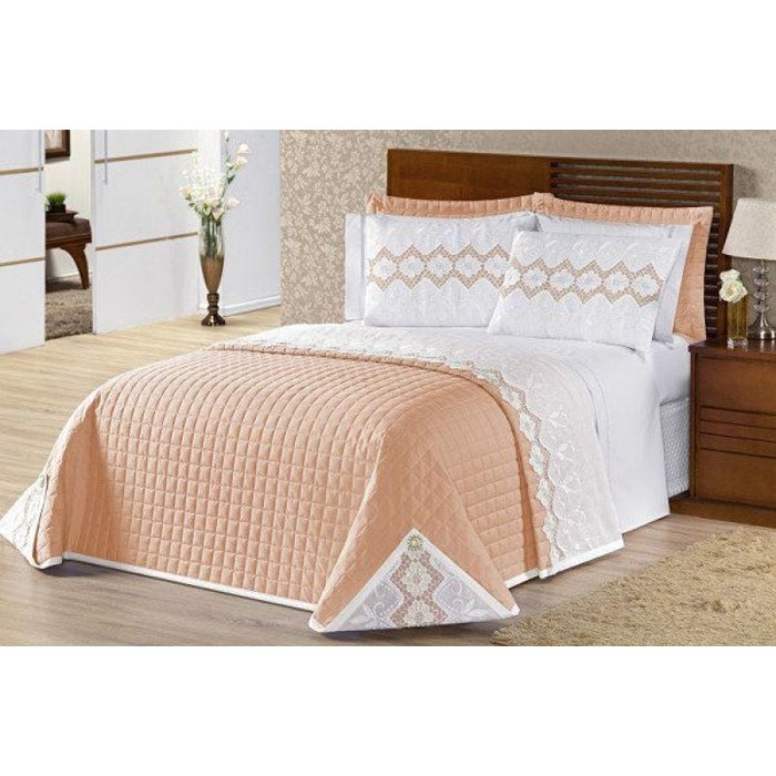 KIT COBRE LEITO CASAL KING SUPREME 07 PEÇAS Conteúdo da Embalagem: 01 Cobre Leito com Vira Bordada 2,70m x 3,20m 02 Porta Travesseiros Matelados 75cm x 55cm 02 Porta Travesseiros Bordados 65cm x 45cm 02 Refis de Travesseiros 65cm x 45cm Composição: Tecido Superior: 80% Algodão | 20% Poliéster Enchimento: Manta 100% Poliéster Tecido Inferior: 50% Poliéster | 50% Poliéster Informações Adicionais: Cobre Leito com Vira Bordada Acompanha Portas Travesseiros Cheios Bordados Acompanha Portas Travesseiros Cheios Matelados Informações Gerais: Produto com Total Garantia de Fabricação; Confira as Instruções de Lavagem e Cuidados na Etiqueta do Produto!
