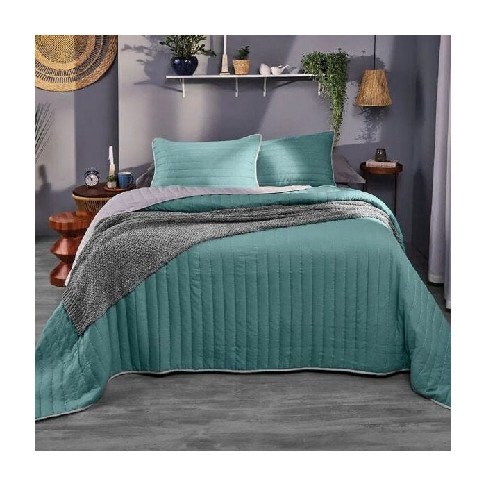 Cobre Leito Casal Kit Lepper -Dupla Face Pesponto Equilibrado Verde