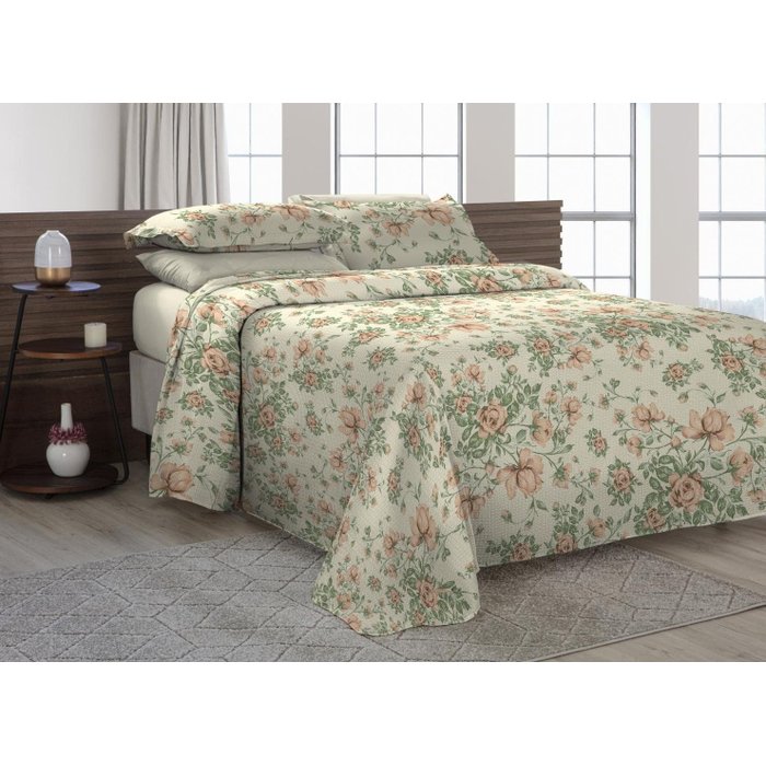 Cobre Leito Casal Padrão com Fronhas Piquet Algodão 3 Peças Bege 1