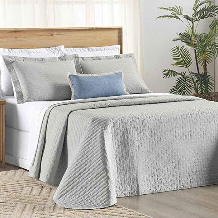 Cobre Leito Casal Padrão Verity 200 Fios Bordado 3 Peças - Cinza