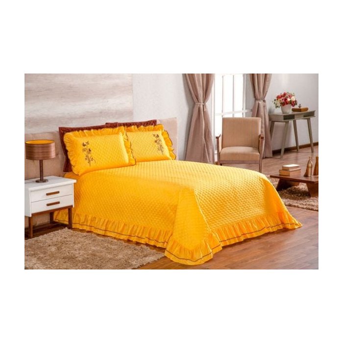Cobre Leito Casal Queen Ester com 03 peças - Amarelo