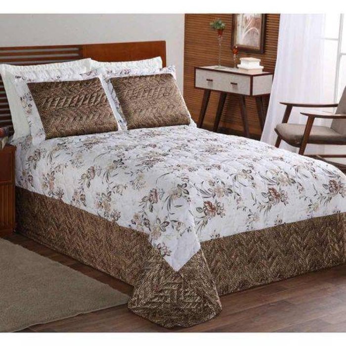 Cobre Leito Casal Queen Infinity 03 Peças Tecido Cetim E Microfibra - Caqui