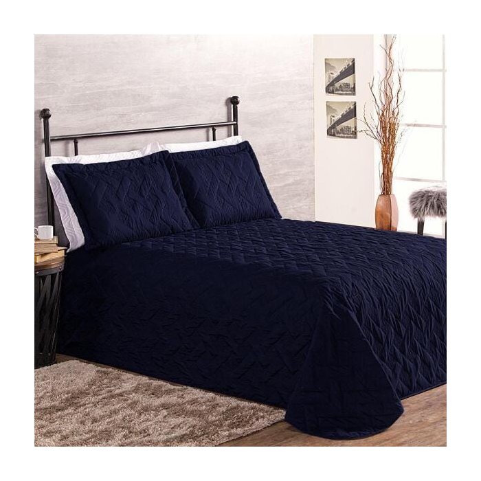 Cobre Leito Clean Casal 100% Poliéster 3 Peças Azul Marinho