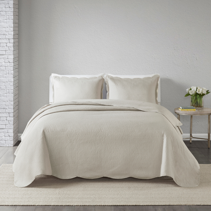Cobre Leito Colcha Casal 3 Peças com Porta Travesseiro Aba Americana Bolinha Bege BEGE