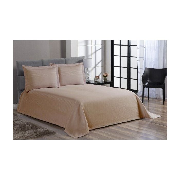 Cobre Leito Colcha Piquet Liso Casal Queen Bege 3 Peças