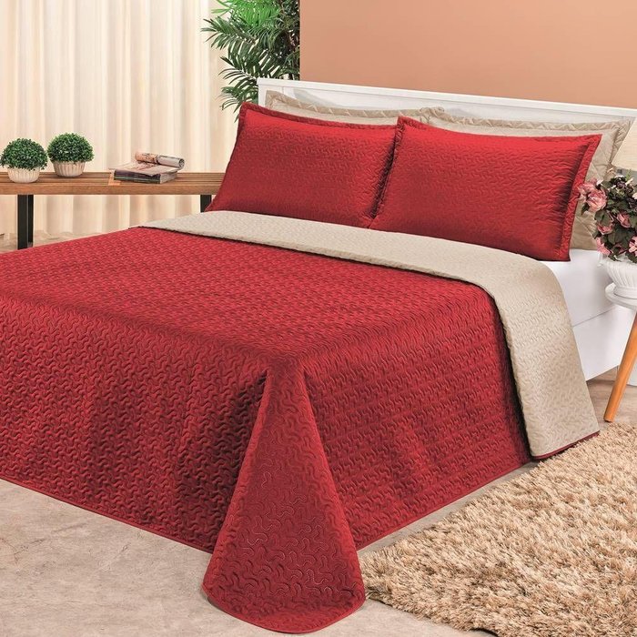 Cobre Leito Dupla Face Casal Clara 03 Peças - Vermelho-cáqui