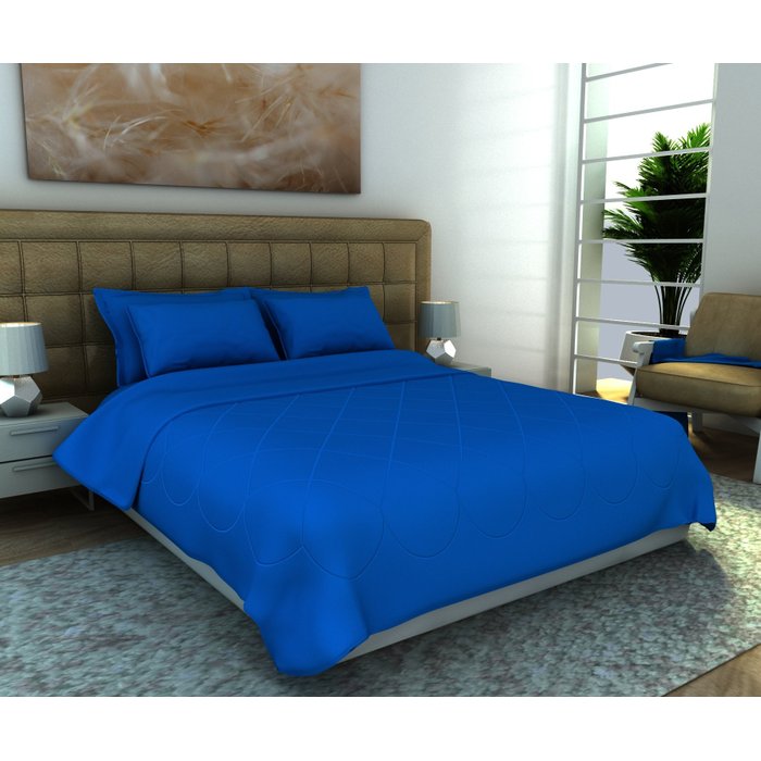 Cobre Leito Full 3 Peças Malha Lisa 100% Algodão Azul Hawaii