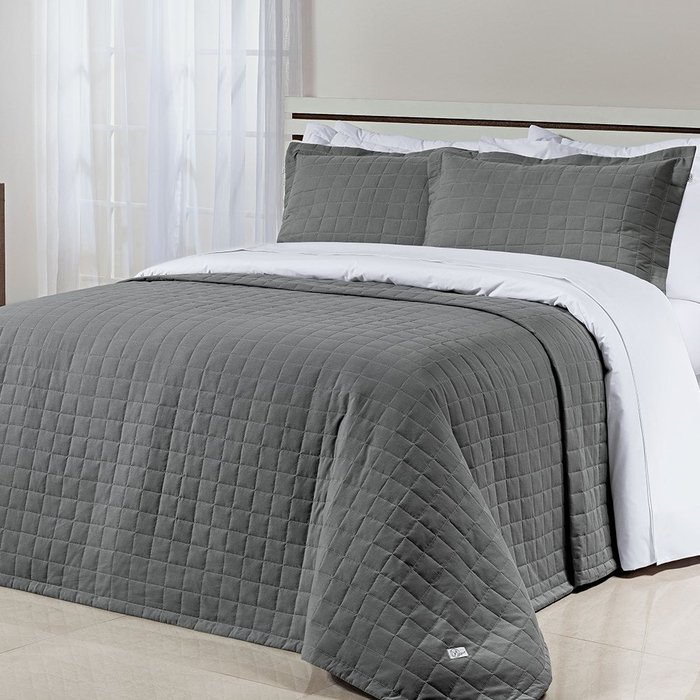 Cobre Leito Glass King 3Pçs 200 Fios 100% Algodão Cinza Cinza