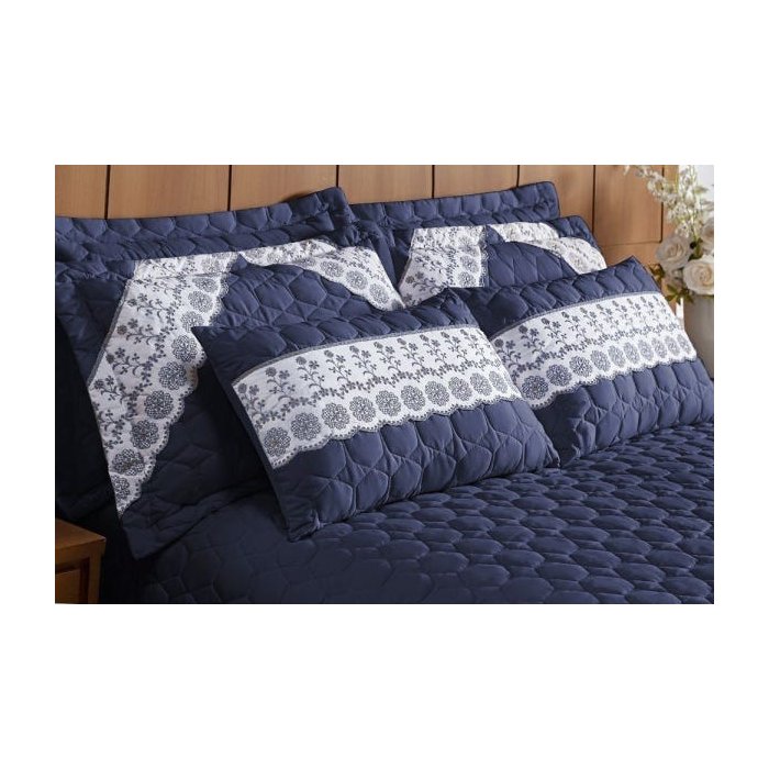 Cobre Leito Império Queen 9 Peças Percal Microfibra Azul Marinho