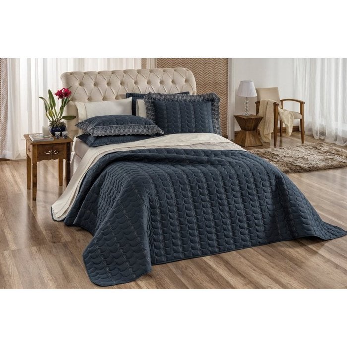 Cobre Leito King Jardine 3 Peças Dupla Face Petróleo