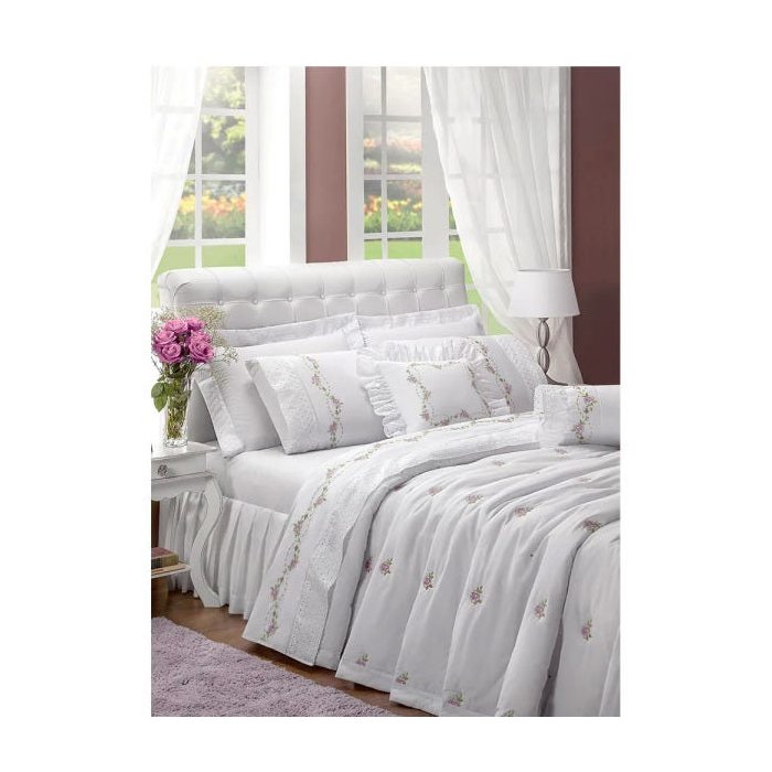 Cobre Leito Queen 200 fios Bouquet Branco Casaborda 6 peças