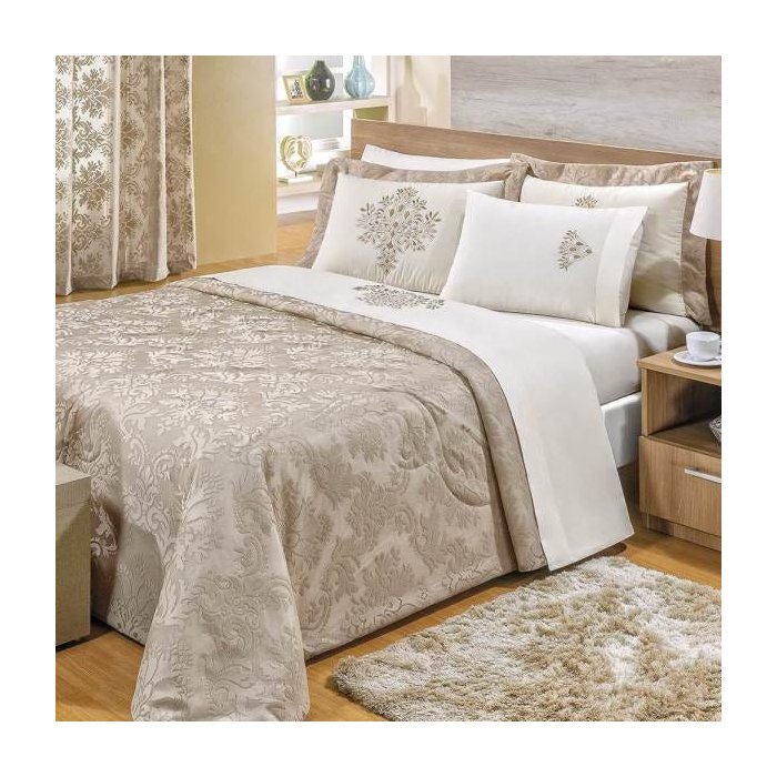 Cobre Leito Queen 200 Fios Vila Real 3 Peças - Cáqui - Cáqui