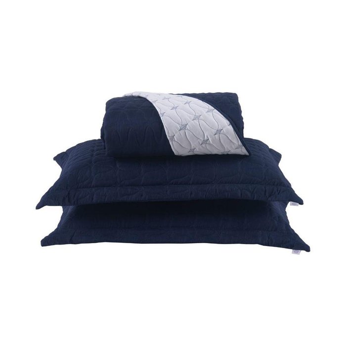 Cobre Leito Queen Cristal Percal 200 Fios Bordado 3 Peças Azul Marinho