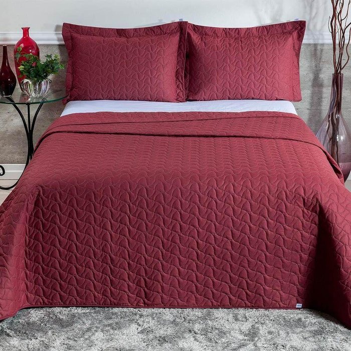 Cobre Leito Queen Egeo Dupla Face Percal 200 Fios 3 Peças Vermelho