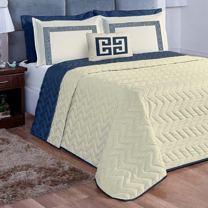 Cobre Leito Queen Grécia Dupla Face 7 Peças Palha Única