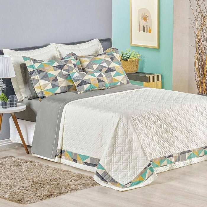 Conteúdo Embalagem: 01 - Cobre Leito 2,60m x 2,50m02 - Porta Travesseiros Estampados 80cm x 60cm01 - Almofada Estampada 50cm x 30cm ( Refil Incluso ) Composição: Tecido Hipercal Peletizado 180 Fios (85g) - 100% PoliésterTecido Estampado: 67% Algodão / 33% PoliésterEnchimento: 100% Poliéster Tecido da Almofada: 67% Algodão / 33% PoliésterRefil Almofada:Tecido: 100% PolipropilenoEnchimento: 100% Poliéster Imagens Ilustrativas. Apenas itens descritos acima, compõem o produto. Demais itens, podem ser adquiridos separadamente. Atenção: Certifique-se que as medidas do produto atende as dimensões da cama a qual será utilizado.