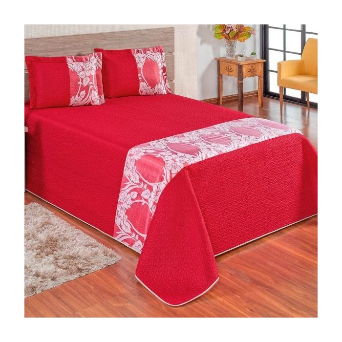 Cobre Leito Queen Matelado Ultrassônico 3 Peças Damasco - Vermelho - Vermelho