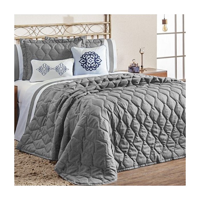 Cobre Leito Queen Portinari Percal 180 Fios 07 Peças -cinza Cinza