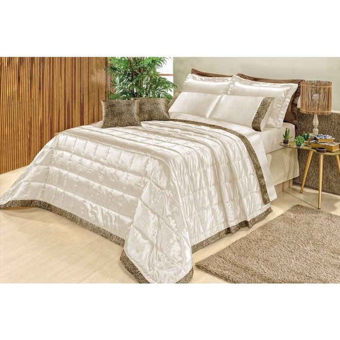 Cobre Leito Safari Casal King 7 Peças Em Seda Bicho Palha
