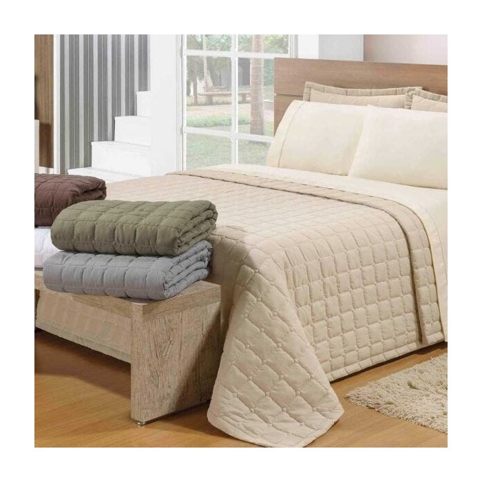 Descrição do Produto: Todo mundo precisa de um cobre leito para o dia a dia. O modelo Soft é perfeito para esse caso, pois alia beleza, qualidade e excelente custo benefício. Dimensões do Produto: Cobre leito 2,65m x 2,60m Características Técnicas: Tecido Superior: 100% poliéster Enchimento: 100% poliéster Tecido Inferior: 50% algodão / 50% poliéster Conteúdo da embalagem: 01 Cobre leito Observações importantes: - As imagens são meramente ilustrativas e não acompanham objetos de decoração e eletros. - Pode haver alguma diferença de tonalidade entre a imagem e o produto, por conta do tratamento de imagens e a calibração de cores da sua tela. - Todos os nossos produtos são enviados devidamente embalados e com total segurança. - Ao receber o produto o cliente deve verificar as condições da embalagem, havendo alguma avaria não assine o comprovante de recebimento, entre em contato com a loja para orientações. - Nosso estoque é dinâmico e a disponibilidade específica de determinado produto está sujeita a confirmação. - Todos os produtos estão sujeitos à alteração de preço sem aviso prévio. - A nossa loja se responsabilizará pela entrega dos produtos adquiridos até a porta de entrada ou portaria do endereço indicado. - Não nos responsabilizamos, no ato da entrega, por montagens, desmontagens e instalações de produtos, bem como, por subir ou descer escadas/elevadores ou pela utilização de guinchos ou equipamentos similares para acesso a pisos superiores em apartamentos, casas ou escritórios. Estas despesas adicionais serão de responsabilidade do cliente. - Confira as dimensões do produto no momento da compra e certifique-se de que passará normalmente por elevadores, portas, escadas e/ou corredores, evitando assim futuros desagrados ou imprevistos com a entrega do produto.