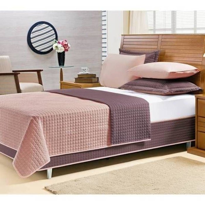 Cobre Leito Solteiro Plaza 02 Peças Dupla Face - Rosê/lavanda