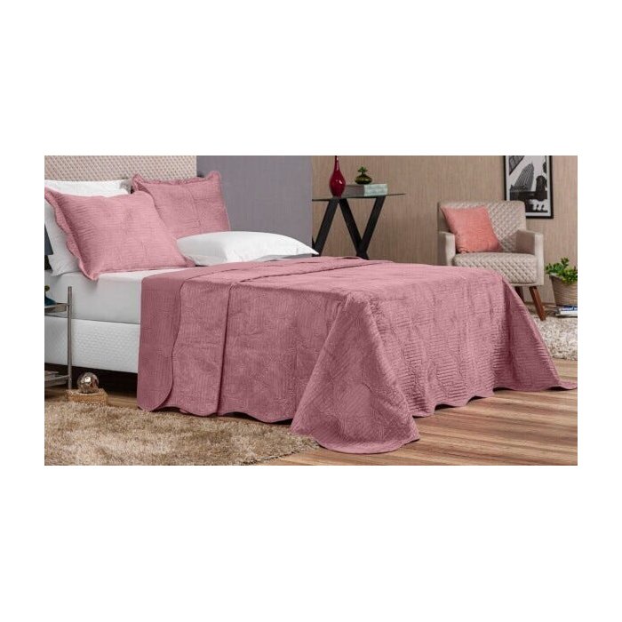 Cobre Leito Velvet Casal Padrão Luxo 3pçs Dupla Face Veludo - Rosê
