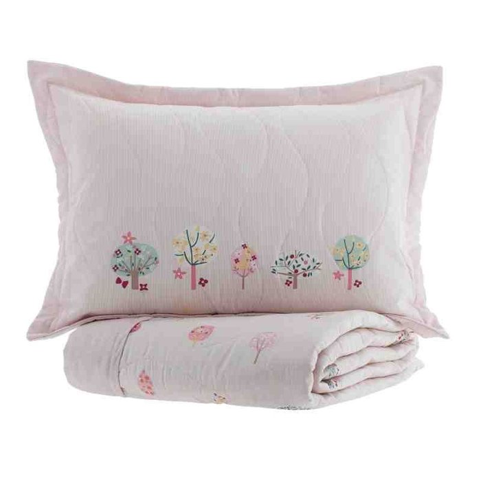 Sobre a base exuberante do tecido de algodão egípcio naturalmente hipoalergênico, com tratamento especial que confere um toque de seda e estampas que permeiam das clássicas as mais contemporâneas. A linha Satinée conta ainda com o percal 300 fios e propriedade anti-pilling. Perfeito para vestir sua cama! Aposte em toda a qualidade da Kacyumara! Cobreleito dupla face com estampas coordenadas com jogo de cama, matelado com acabamento em viés em toda a volta; Porta travesseiro matelado com estampa exclusiva localizada e 4 abas. Principais características do produto: dupla face; matelado com acabamento em viés em toda a volta; Porta travesseiro com 4 abas, matelado com estampa localizada. A graciosa estampa Amel traz consigo uma proposta encantadora. Suas belíssimas árvores em uma coloração alegre desenham o padrão de maneira primorosa.