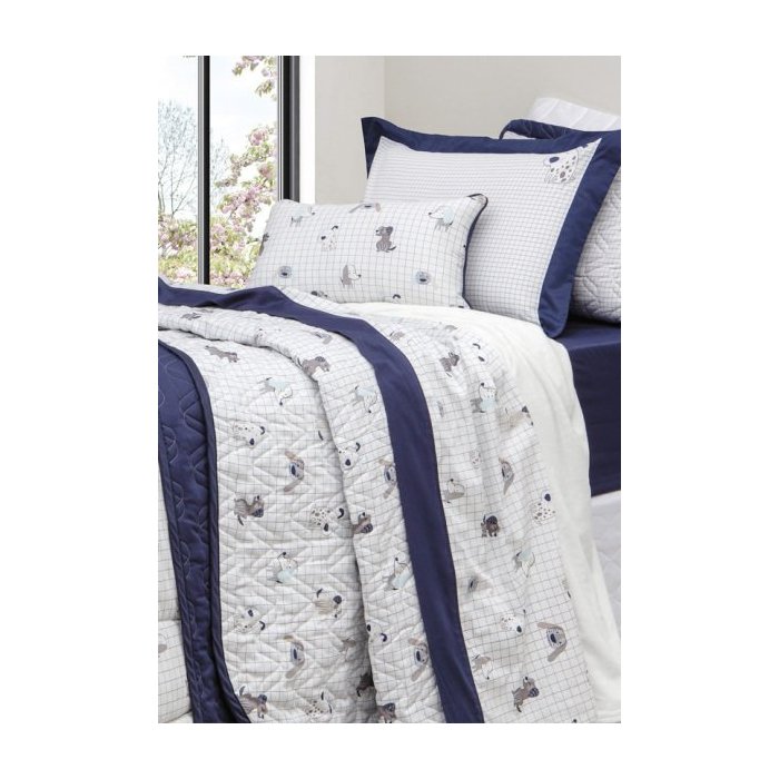 Cobreleito Satinee 300 fios Doguinho - Solteiro azul marinho