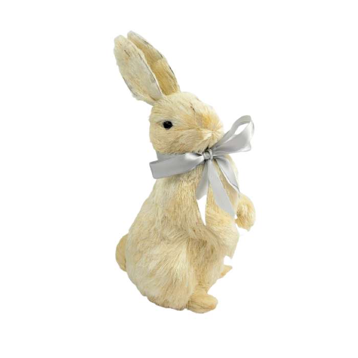 Coelho De Palha Laço Cinza 34x15x19cm Decoração De Páscoa G
