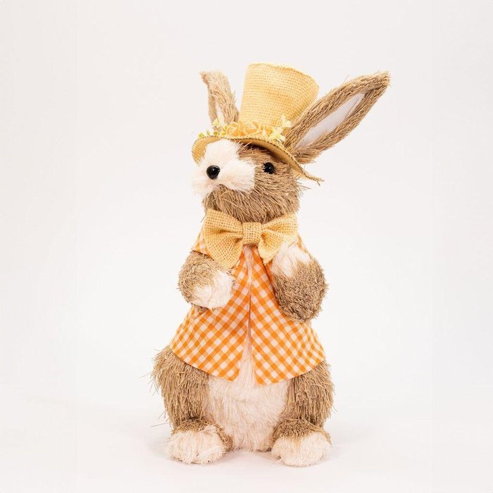 Coelho de Páscoa Enfeite Decoração Com Chapéu e Flores 34cm -